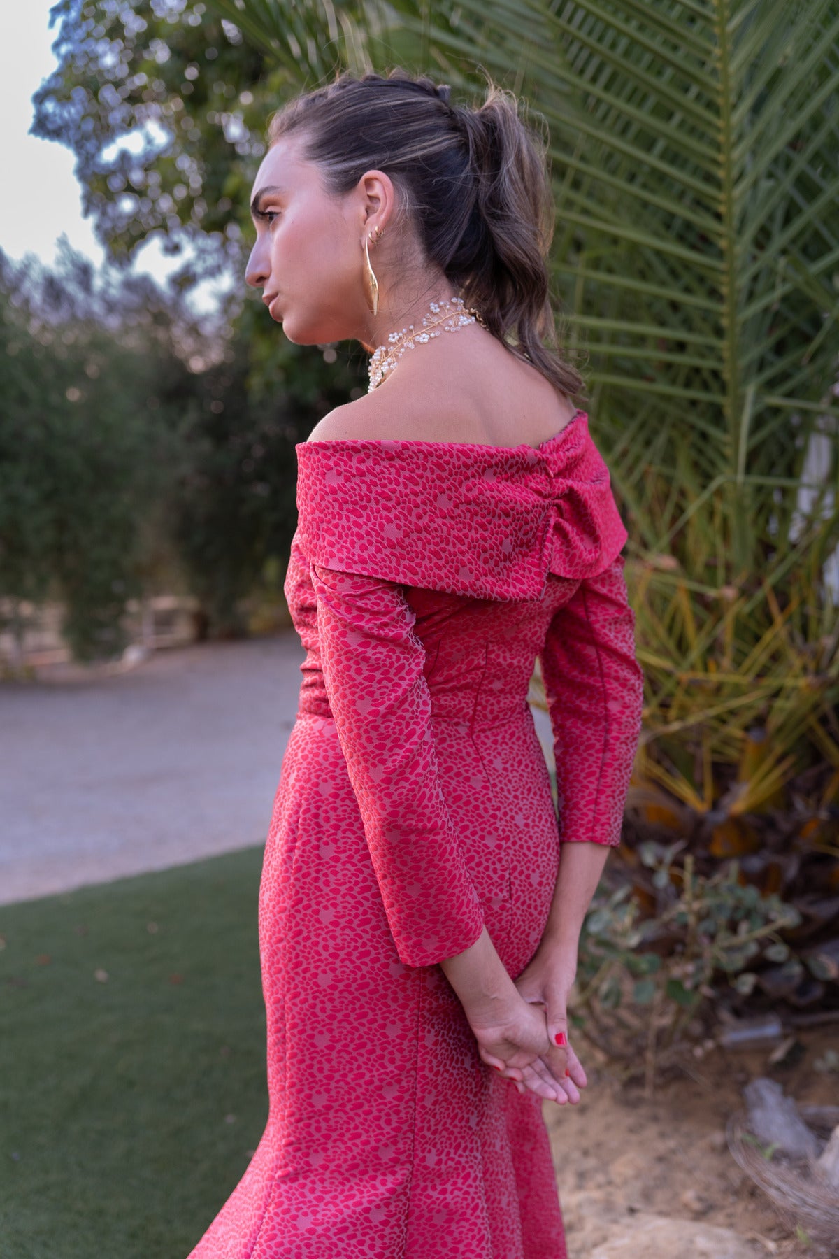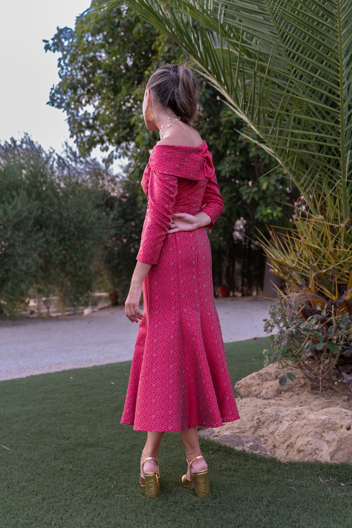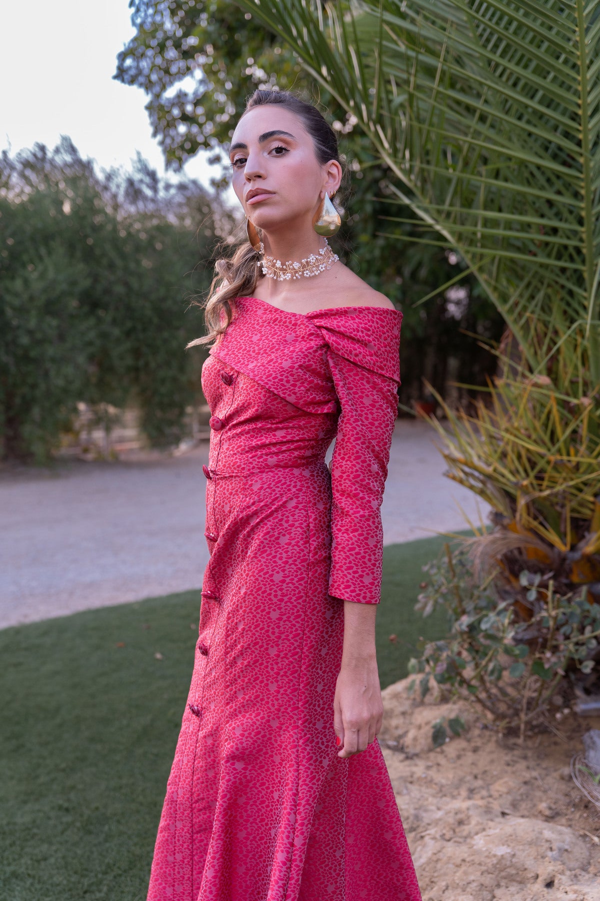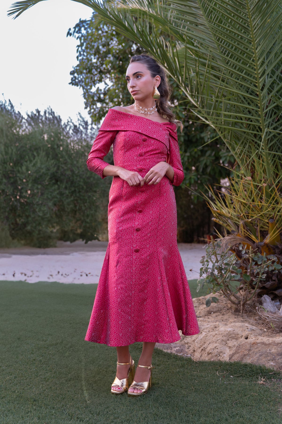 Este vestido midi Salura combina un diseño entallado hasta la rodilla con un elegante vuelo en el bajo, realzando la silueta femenina. Su abotonado delantero aporta un toque clásico, mientras que el detalle de gasa en el escote y las mangas francesas añade sofisticación y ligereza, ideal para ocasiones formales...
