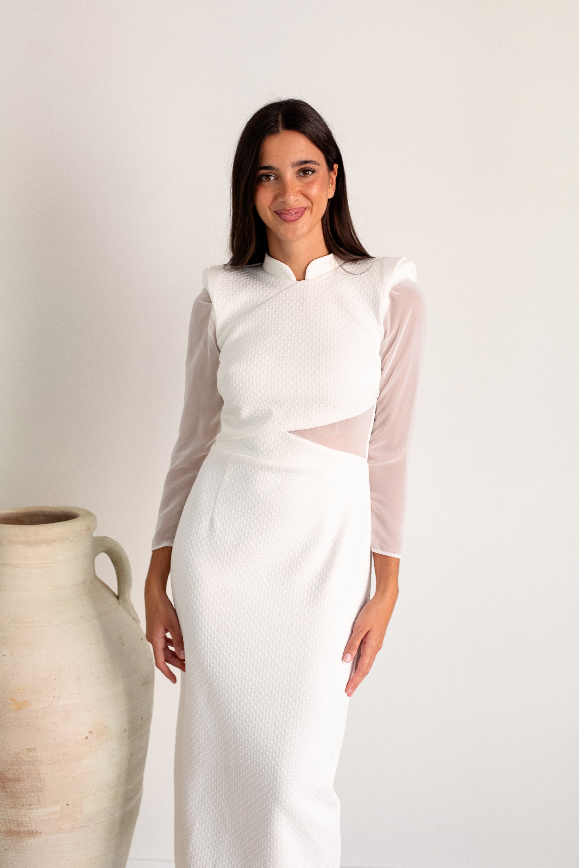 Lea Dress - Minimalist elegance with sophisticated details Fall in love with this spectacular all-white dress that combines minimalism and sophistication. The Lea Dress by Blanca Martin is perfect for the woman seeking an elegant, modern, and memorable look for special events. Dress details: Elegant mandarin collar that adds sophistication...