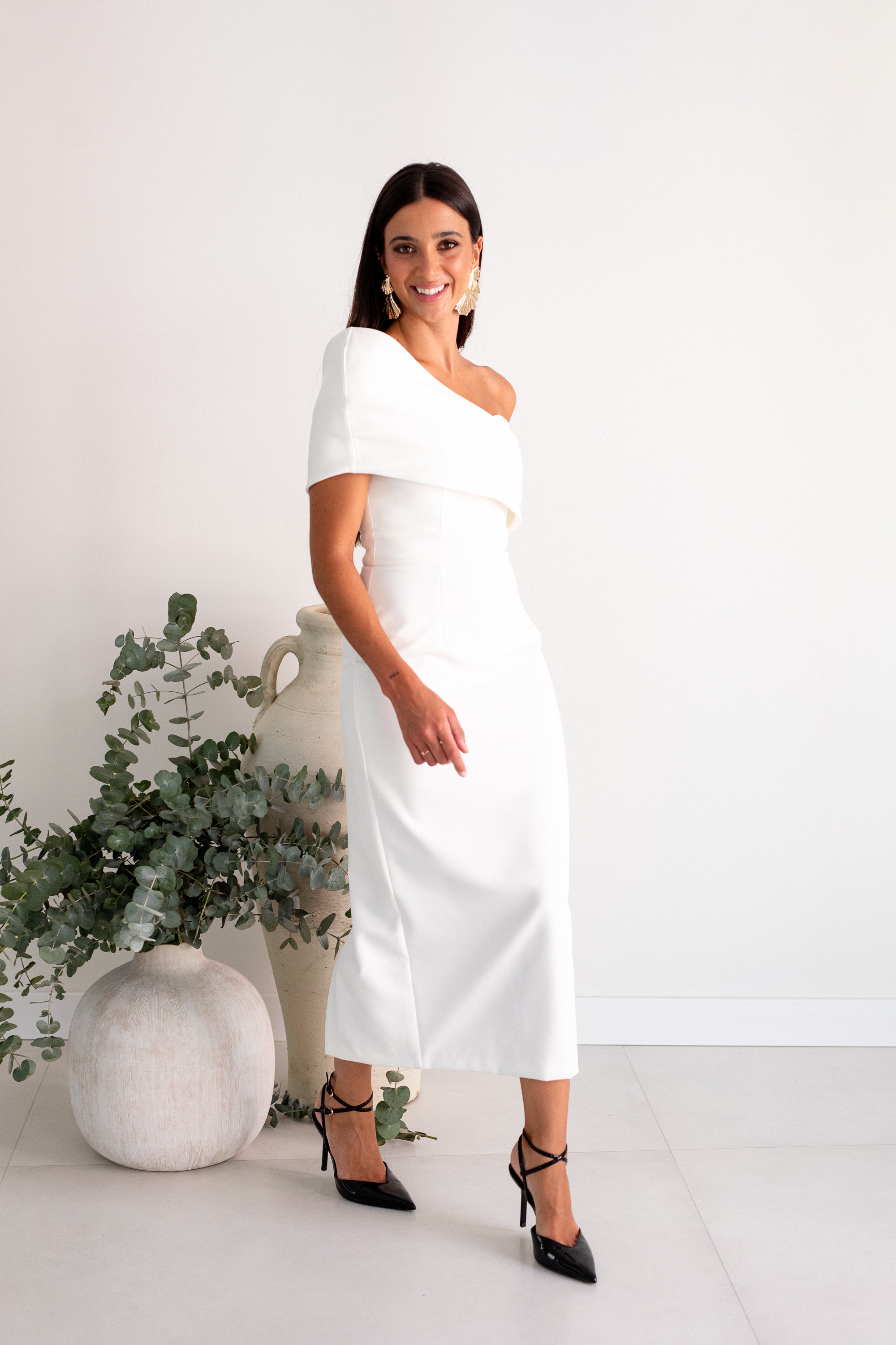 Naeme Dress - Minimalist asymmetrical elegance in white Fall in love with this spectacular asymmetrical white dress that combines sophistication and contemporary design. The Naeme Dress is perfect for the woman seeking an elegant, modern, and memorable look for special events. Dress details: Asymmetrical one-shoulder design - elegant and modern...